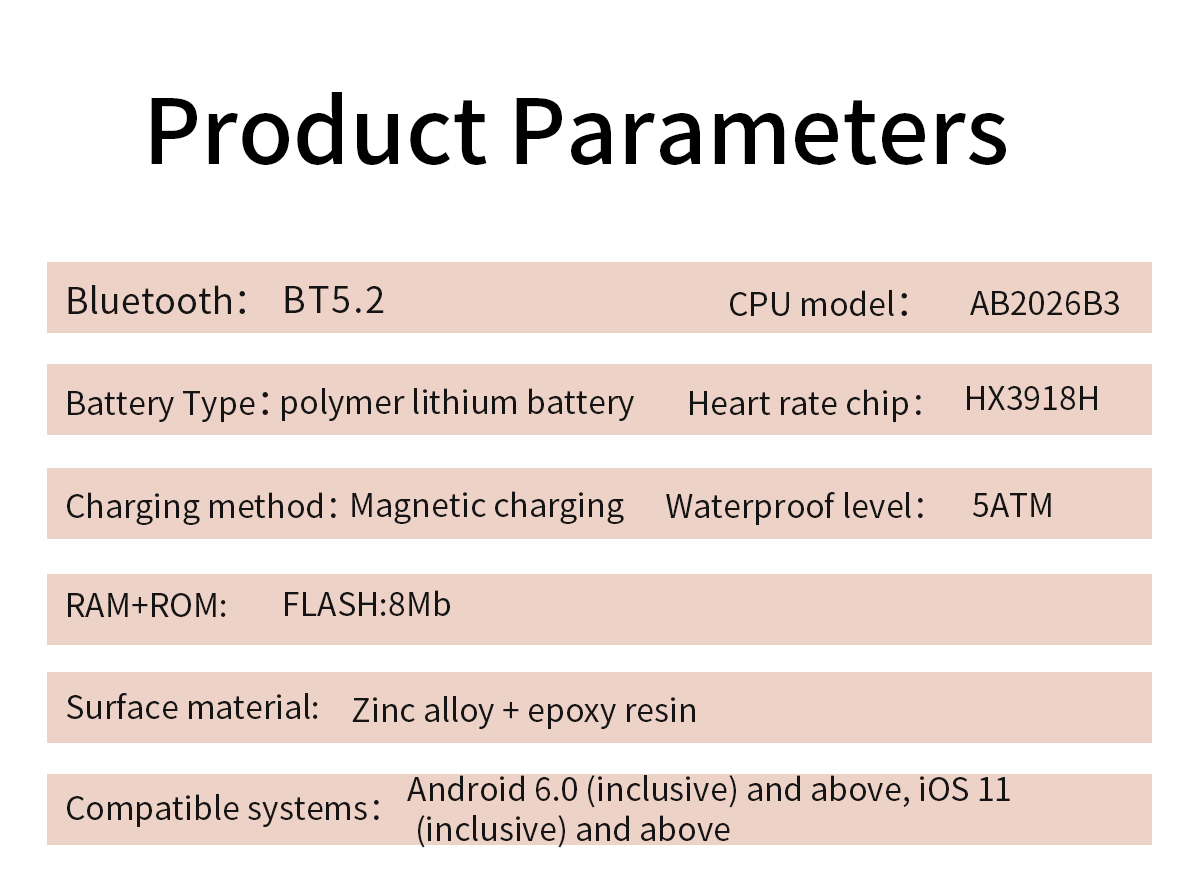 The B6 redefines smart health monitoring with a screen-free design. Its zinc alloy and epoxy resin body, paired with a refined chain strap, integrates 24-hour heart rate tracking, real-time blood oxygen monitoring, HRV and stress analysis, scientific sleep tracking, and sports mode support. With 5ATM water resistance and magnetic charging, it seamlessly fits daily and active lifestyles, making it a discreet and reliable health companion for modern life.