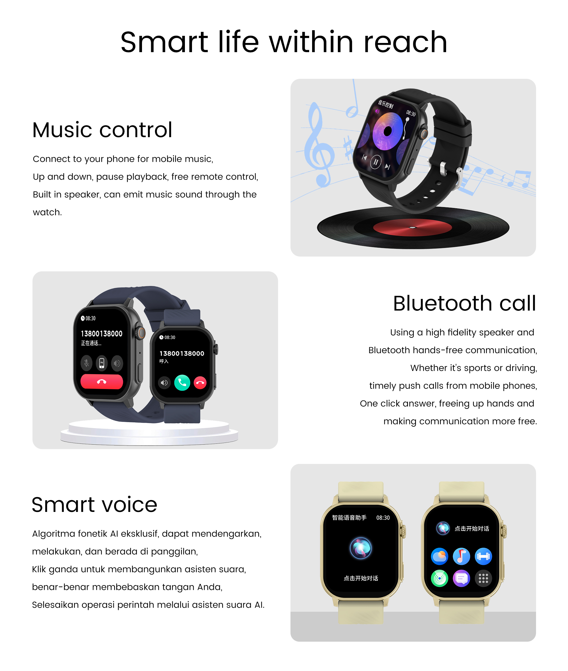 【Convenient Make/Answer Call】After connecting to your phone via Bluetooth, you can enjoy convenient communication functions anytime, anywhere, including Make/Answer calls. This feature not only improves work efficiency but also adds more convenience to your daily life. You no longer need to take out your phone frequently as you can easily check messages on your watch, stay in touch while exercising or driving, and never miss important information.