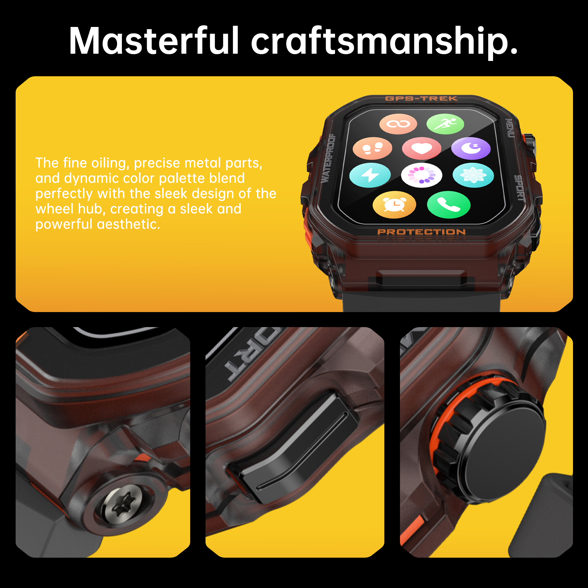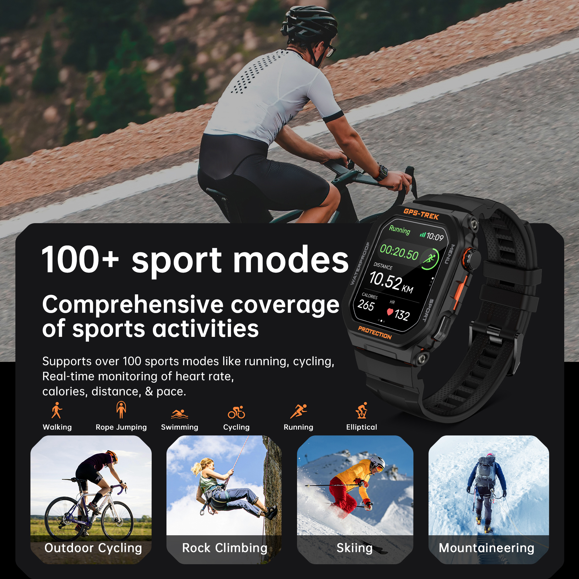 【Military Grade Durability】This robust Military smart watches for men has passed 12 stringent military-grade tests, ensuring it's ready for any adventure. With heat and cold resistance, it can withstand drops, shocks, scratches, and impacts. It's waterproof and dustproof, capable of enduring extreme environments like deserts, glaciers, and jungles. Boasting 5 times the durability of standard smart watches for men, it's the perfect companion for tackling the toughest outdoor challenges.