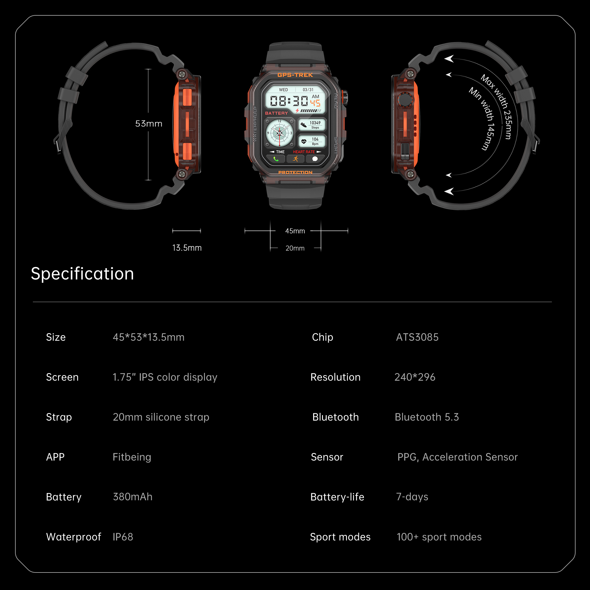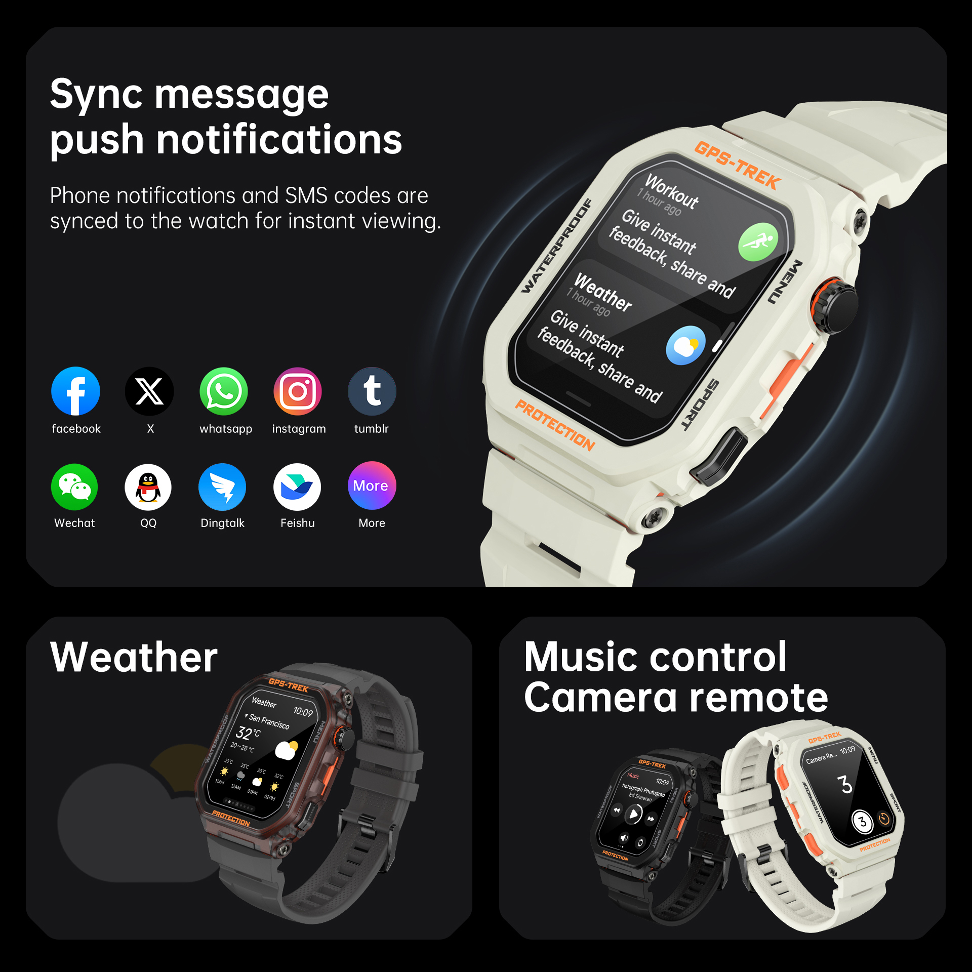 【100+ Sports Modes & IP68 Waterproof】This versatile smart watch supports over 100 sports modes for both indoor and outdoor activities, including running, cycling, walking, hiking, yoga, skiing, soccer, and rugby. By connecting to Bluetooth and utilizing the GPS function, it can track all your workout routes and physical condition during exercise. With an IP68 waterproof rating, you can wear it while washing your hands or in the rain(*Note: Not suitable for saunas, hot water)