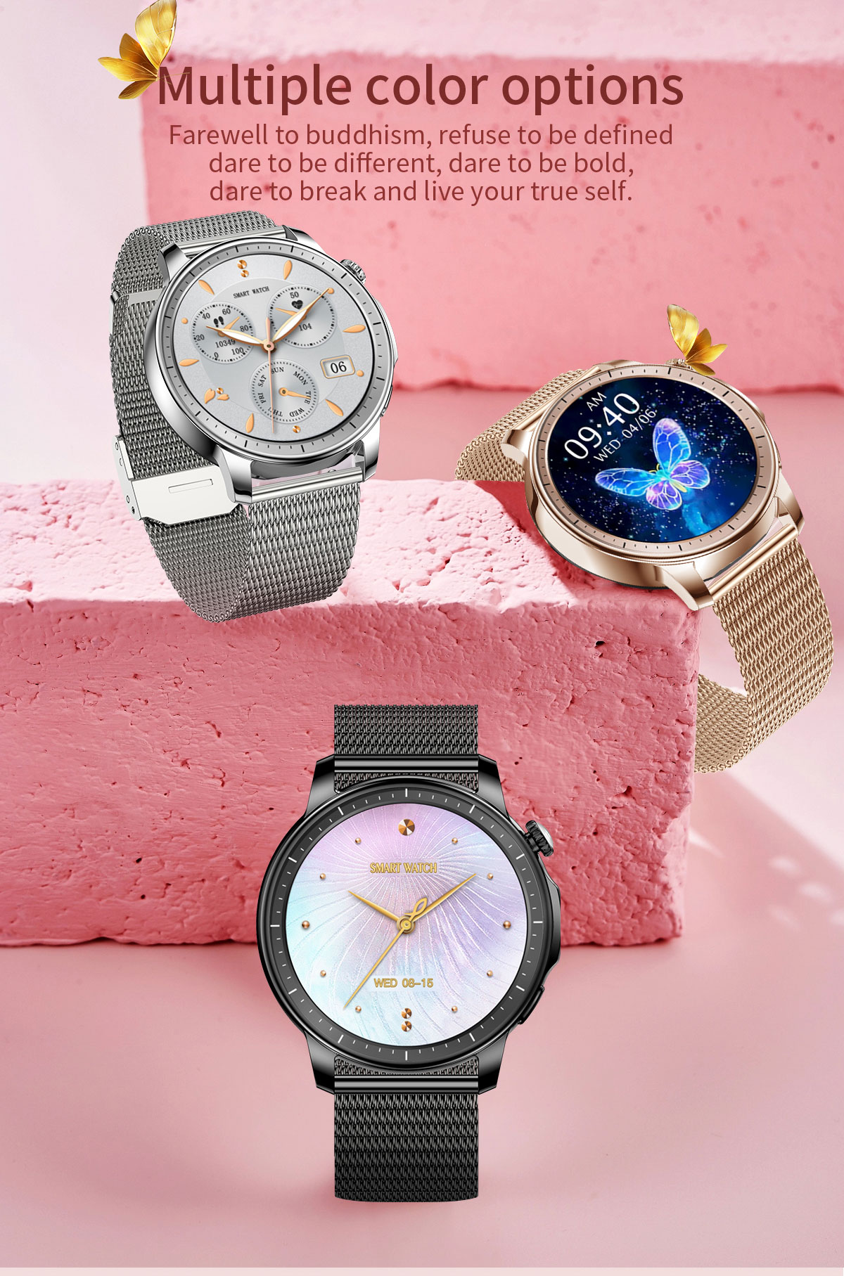 l Interchangeable Straps: The watch comes with three straps which you can change your vibe