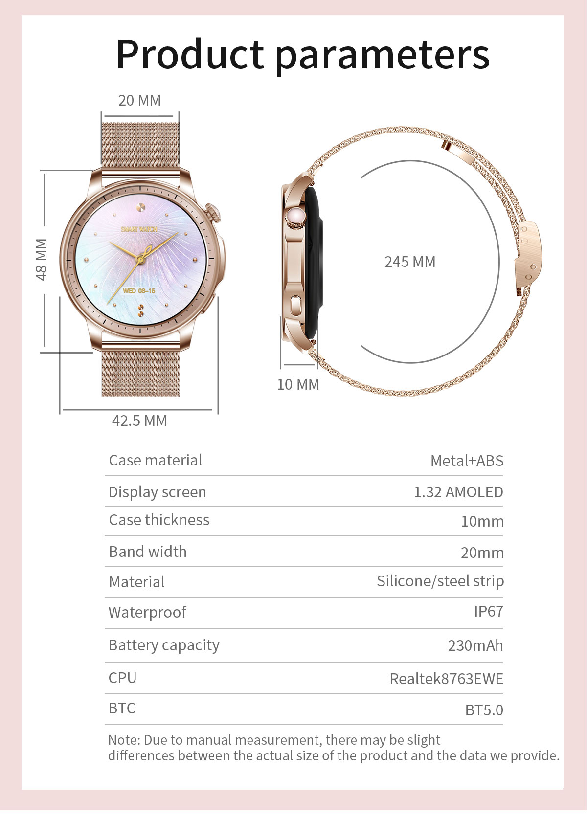 l Sizeable display screen: comes with a 1.32 Inch HD AMOLED Display screen and 360*360 resolution.