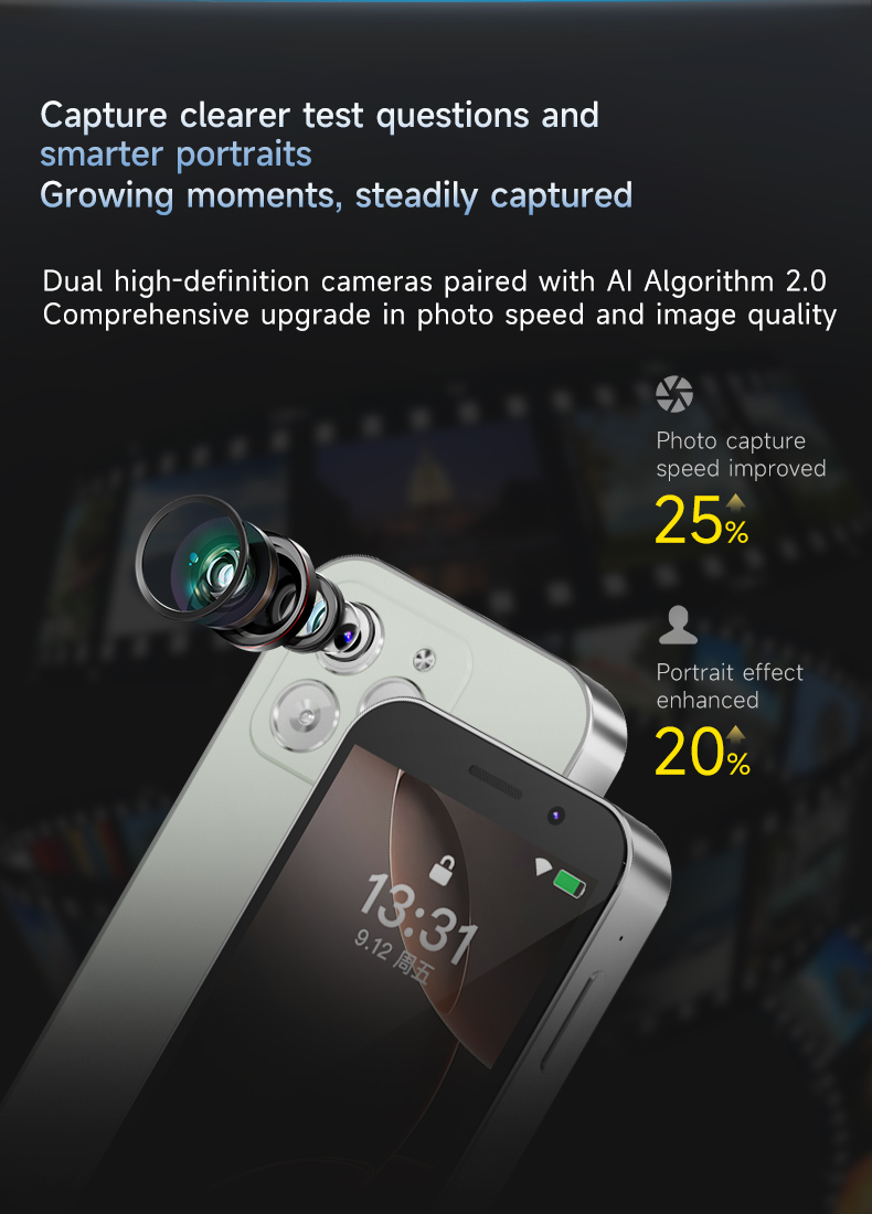 The front 2MP (GC2385) and rear 5MP (GC5025) autofocus cameras with flash support clear video calls and photo taking. The AI-powered design delivers smart interactions, making learning and communication more engaging for kids.