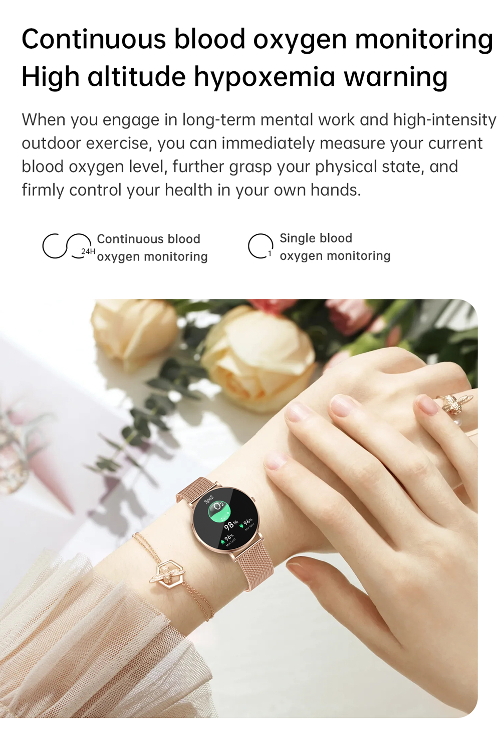 Activity tracker: This Fitness tracker with heart rate monitoring, blood pressure monitoring, blood oxygen monitoring, sleep monitoring, and all-day heart rate measurement. Used with the Da Fit app to set up heart rate alerts. Fitness tracker watch for women sleep monitoring provides deep sleep, light sleep, eye movement sleep, wake data. Smartwatches and apps offer multiple views of data