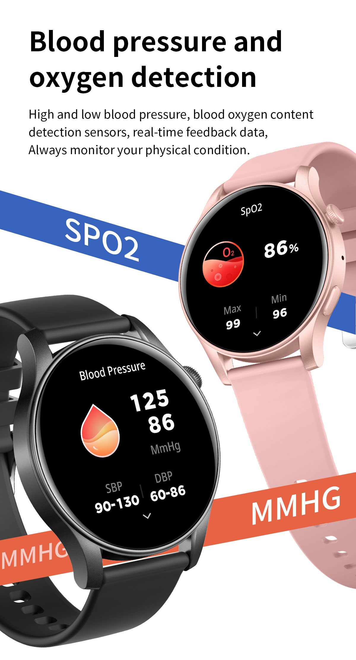 *24/7 Monitor Your Health* Adopts high performance heart rate sensor, automatically collects heart rate data every half hour collects heart rate data once every half hour and intelligently identifies abnormal heart rate. watch allows you to monitor and keep track of your body changes anytime, anywhere.
