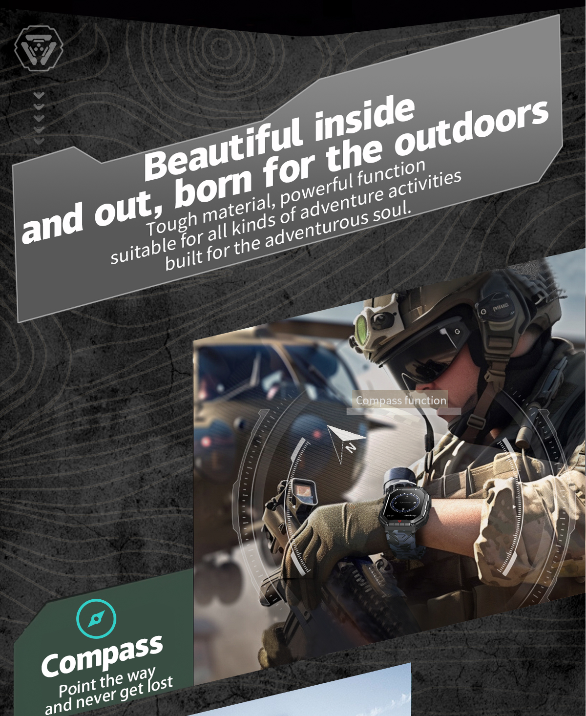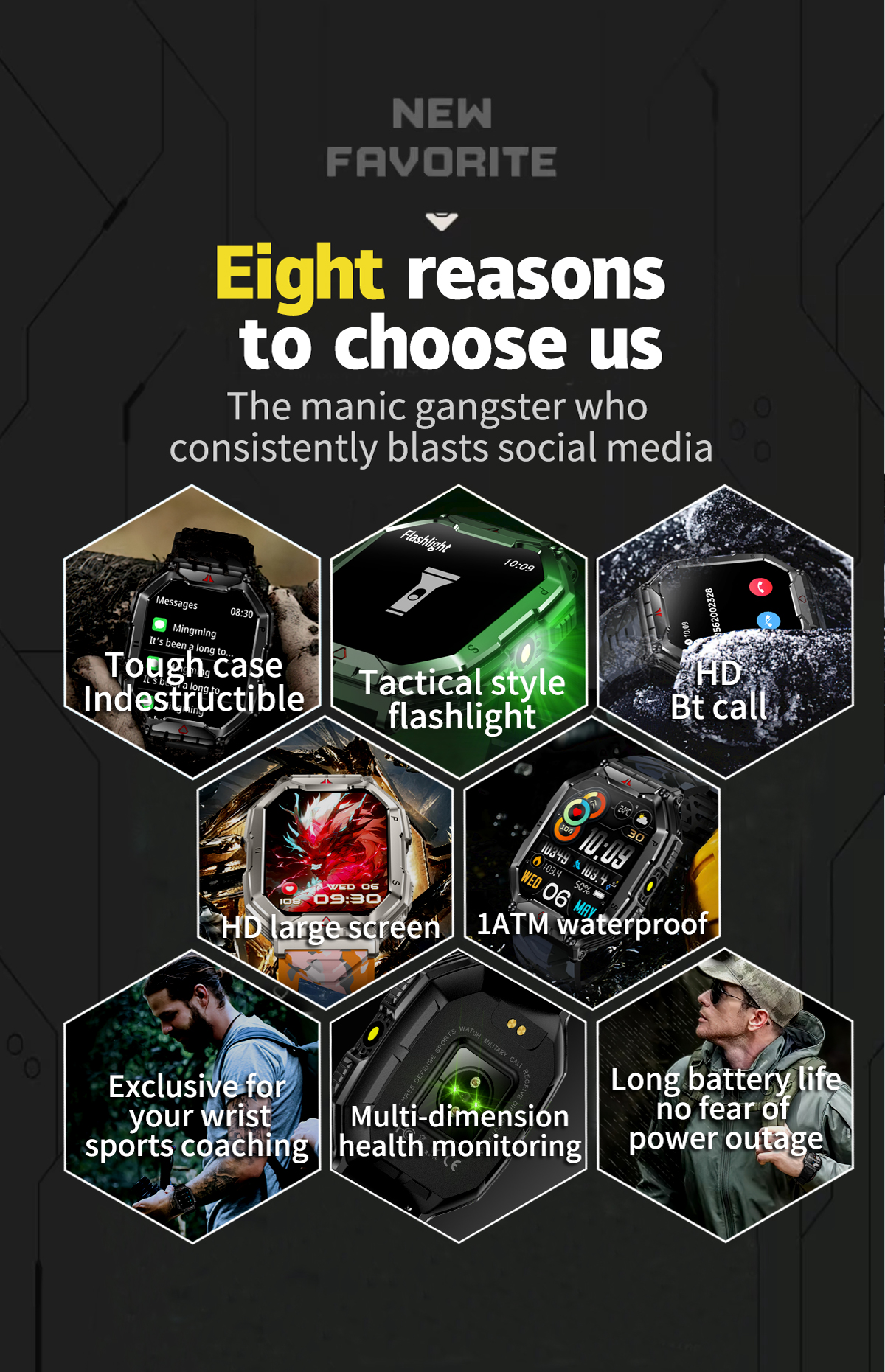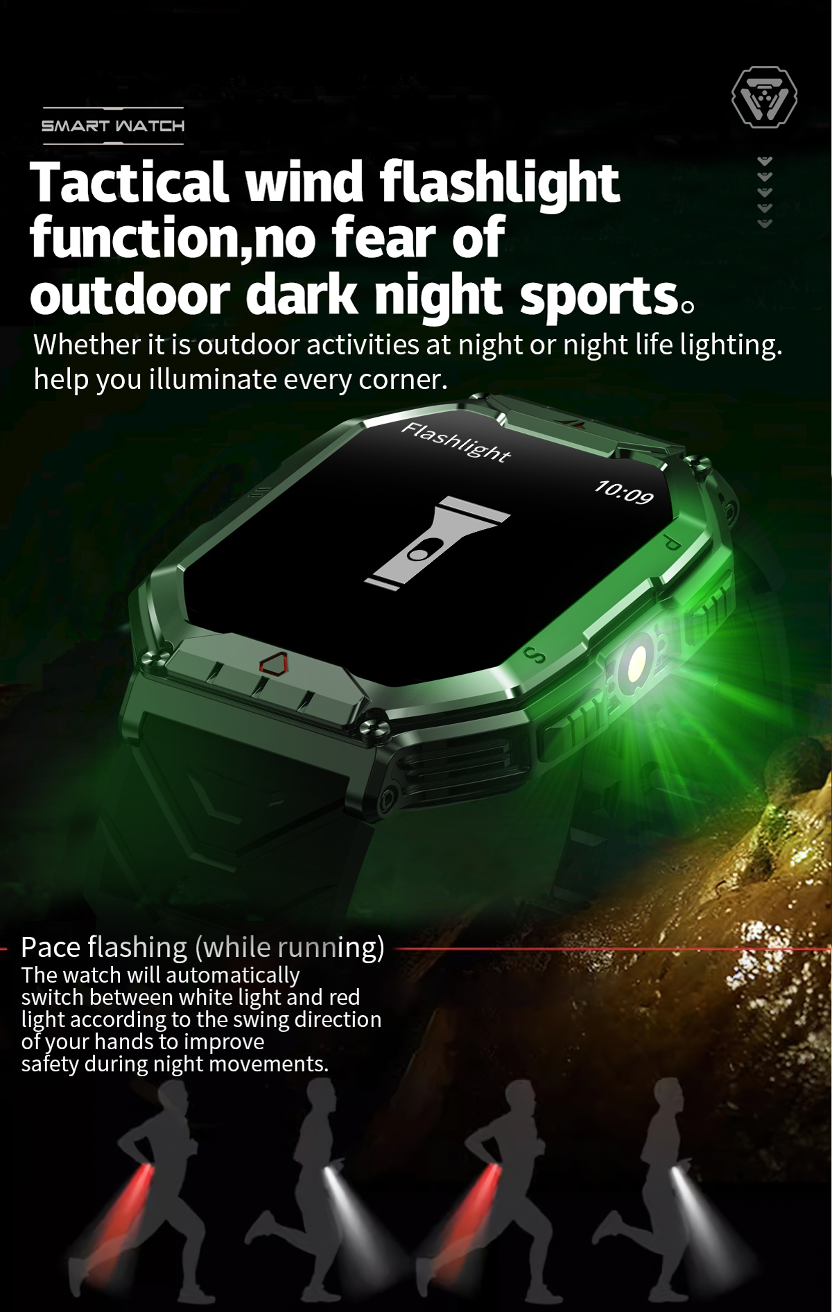 【Rugged Military Smart Watch with Flashlight】- tactical smartwatches case is made of zinc alloy and has passed several military-grade tests such as extreme temperature, low air pressure, dustproof, and more for rugged durability!men's smart watch is equipped with a flashlight on the side, which provides you with a bright light whether it is outdoor activities at night or sudden dark situations, allowing you to cope with various environments anytime and anywhere.