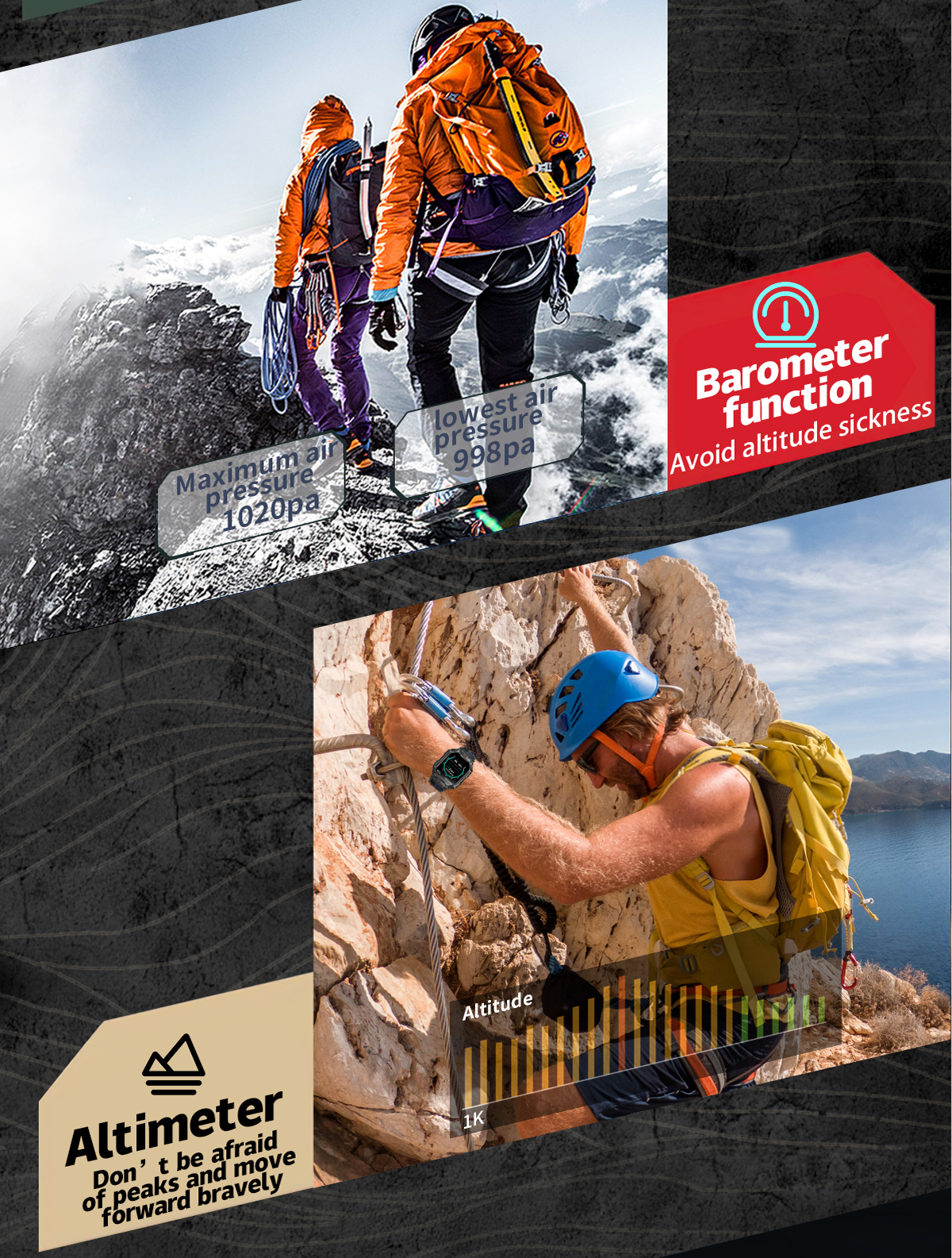 【1ATM Waterproof Smartwatch with Compass and Barometric Needle Function】- smart watch offers a fully enclosed design and passes the strict 1ATM waterproof test, so you can wear it during daily water sports such as swimming, diving etc.! smart watch is also equipped with a compass function, so you are no longer afraid of losing your way during outdoor sports, the equipped barometric needle function can monitor changes in atmospheric pressure, helping you predict weather changes.