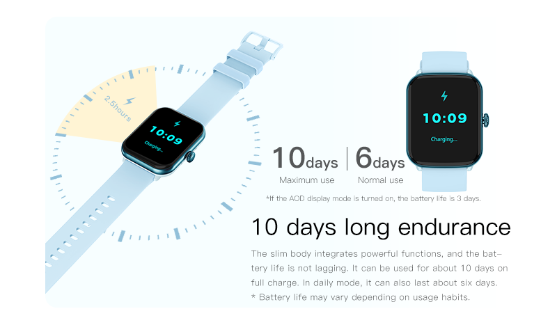 Equipped with a professional heart rate sensor and high-precision G-Sensor, it accurately monitors core health data such as heart rate, steps, and calorie burn to support daily health management. Practical features like sedentary reminders and drink water alerts help you adjust your routine and build healthy habits. Bluetooth 5.3 ensures stable connectivity, with message and call notifications so you never miss important updates. The 300mAh battery provides 5-7 days of normal use and 7-12 days of standby time, eliminating the need for frequent charging.