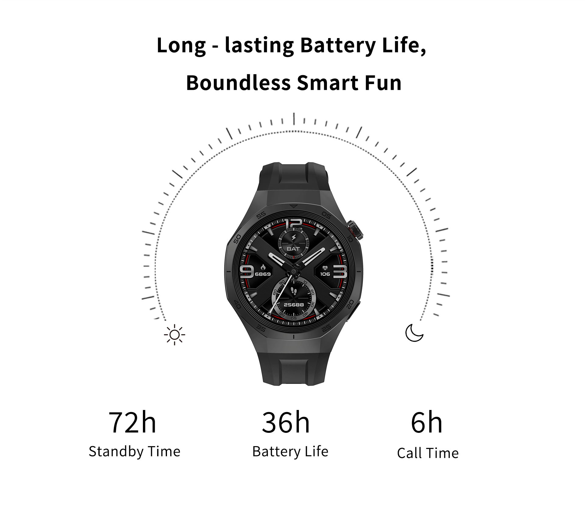 Equipped with high-precision sensors, it supports 123+ sports modes, accurately re cording core data for running, cycling, water sports, and more to help improve your performance. Comprehensive health monitoring tracks key indicators like heart rate in real time, while smart features such as sedentary reminders and drink water alerts help you build healthy habits. The 370mAh battery delivers 7 days of smart mode use or 12 days of standby time, eliminating the need for frequent charging and accompanying you on every journey 24/7.