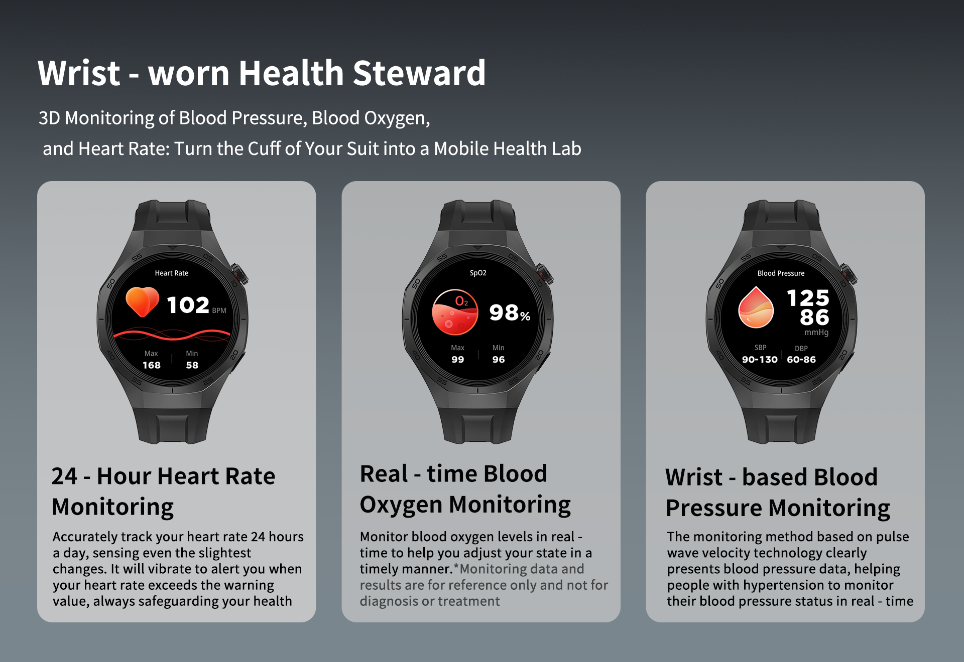 | Outlook&Material(产品外形和材质) | Zinc alloy frame + plastic spray paint case + silicone strap | |