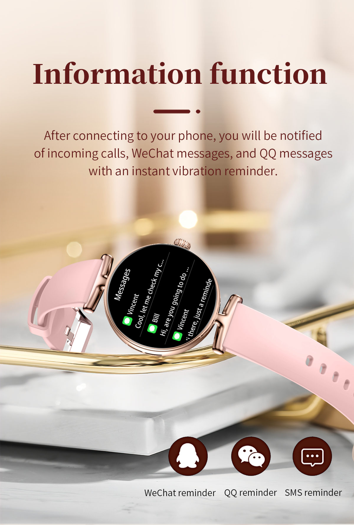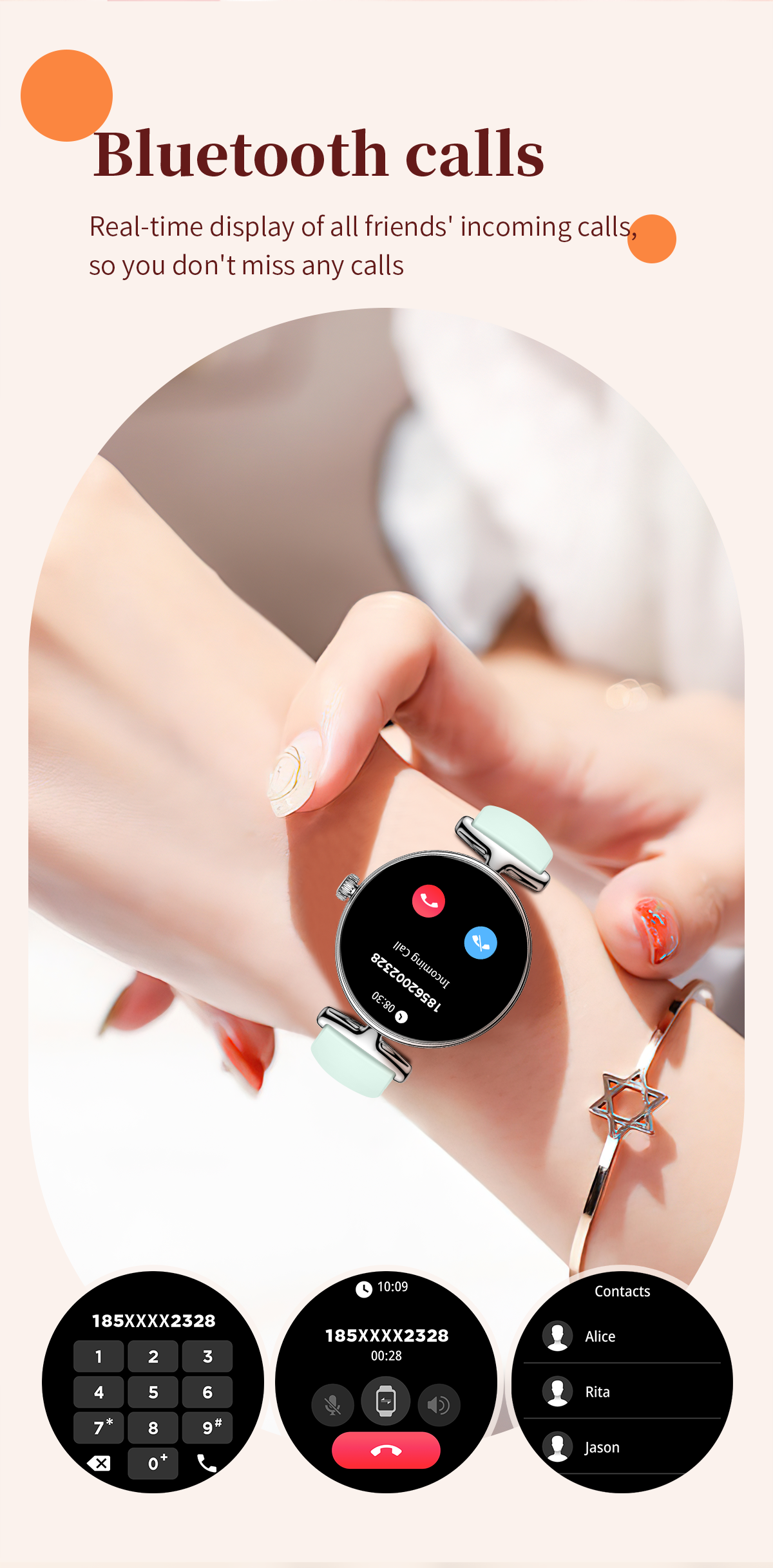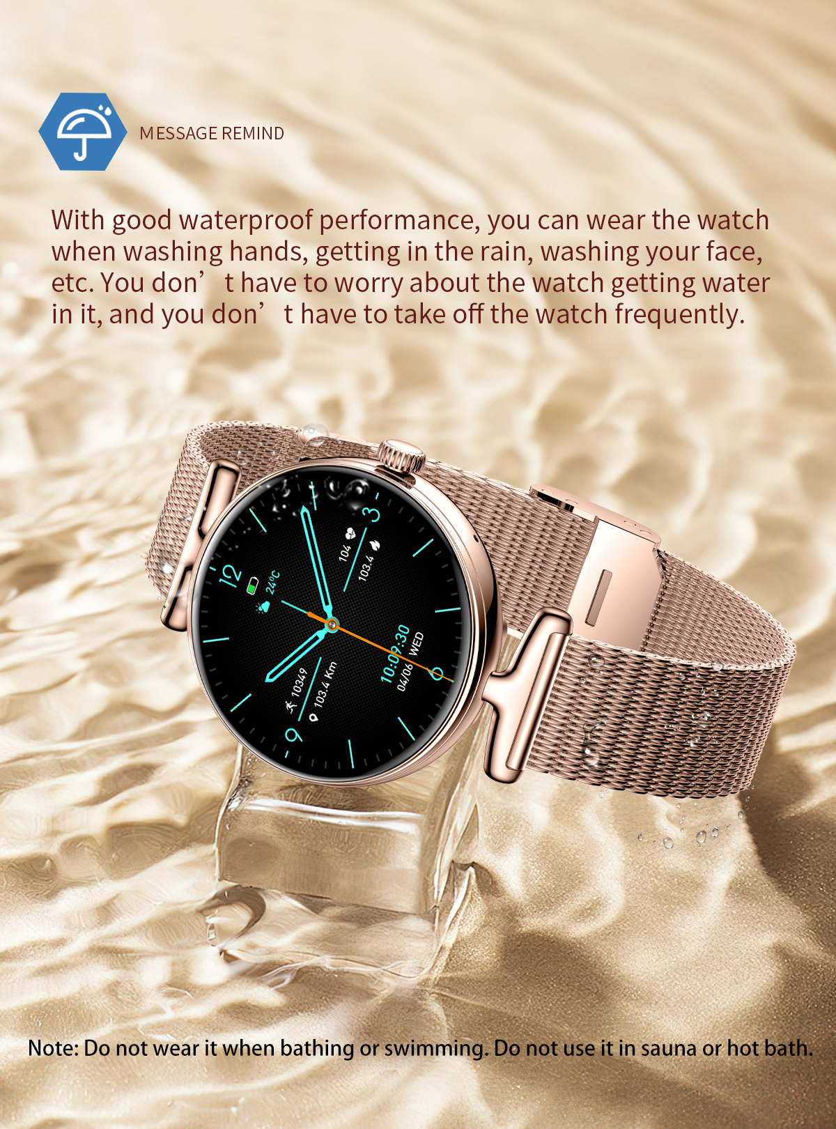The SW41 is equipped with Bluetooth 5.3 technology, supporting high-definition Bluetooth calling to free your hands for clear communication during commuting, sports, or busy moments. Message alerts allow you to check notifications directly on the watch without taking out your phone, for efficient and convenient connectivity. The IP68 waterproof rating stands up to daily hand washing, sweat, and light rain, easily handling life's scenarios and integrating technology into your elegant daily life.