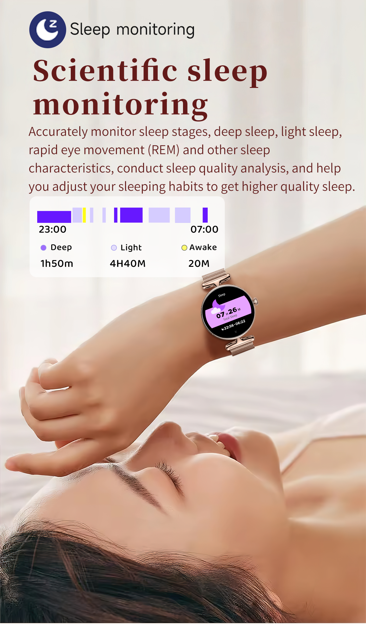 The SW41 supports comprehensive health monitoring, tracking core indicators such as heart rate, steps, and calorie burn in real time, providing timely feedback on your physical state. With over 20 built-in sports modes covering running, yoga, cycling, and more, it accurately records exercise data to support light workouts and daily health management. As your thoughtful wrist companion, it accompanies you 24/7, letting health and elegance go hand in hand.