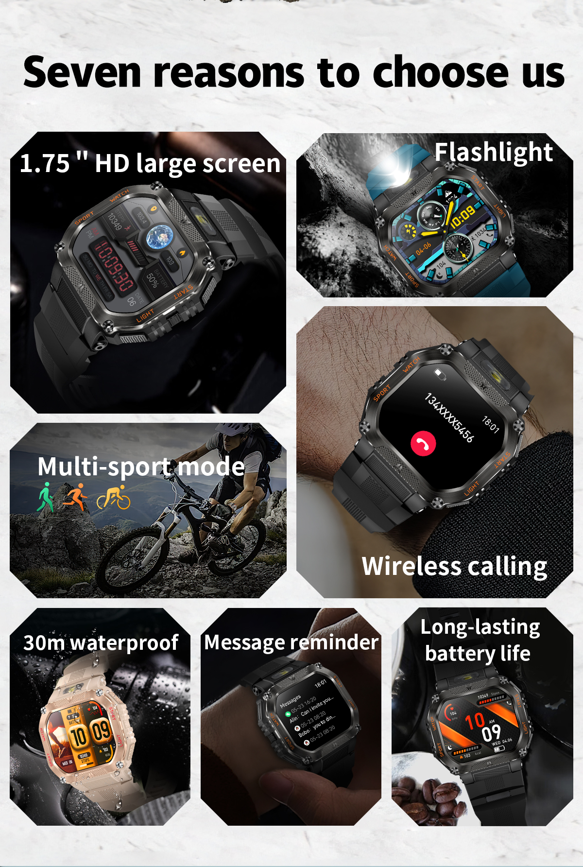 The SW42 is equipped with a professional GPS module to accurately record movement tracks; the built-in altimeter/barometer and electronic compass provide real-time orientation and altitude data, offering reliable navigation guarantees for mountaineering, hiking and other outdoor activities. The built-in flashlight makes night adventures safer, keeping you oriented in the wilderness for boundless exploration.