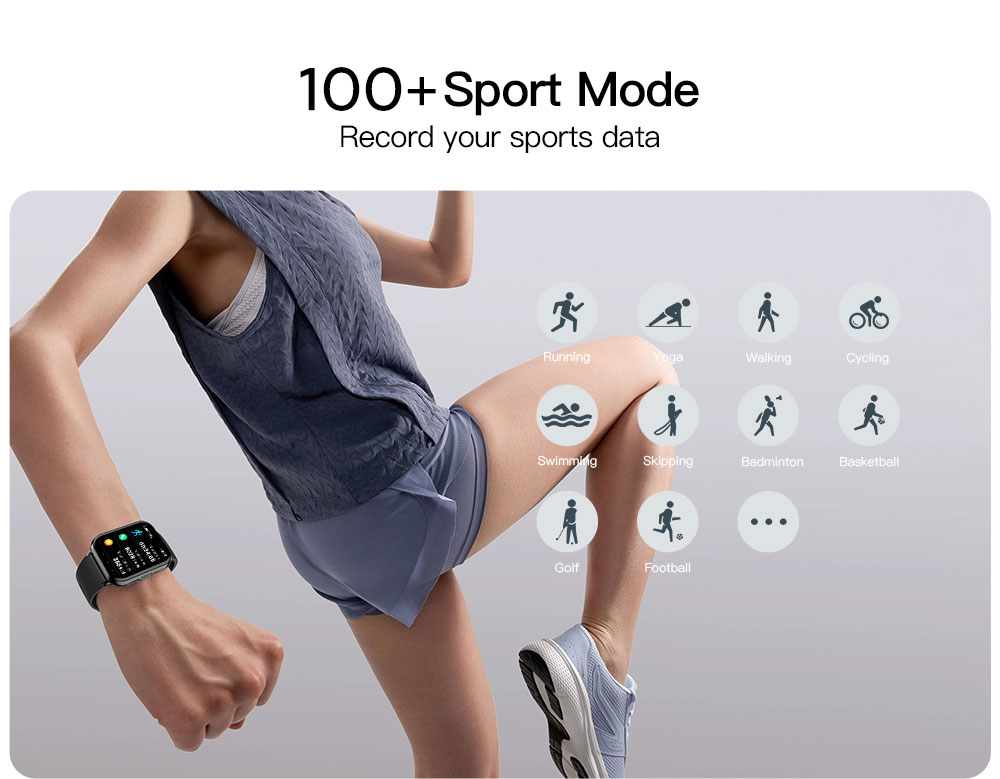 Sport watch with multi sports modes and various practical functions. Sport modes include walking, running, cycling, jumping rope, yoga, fitness and more, can also work as an assistant: stopwatch, sedentary reminder, drink water reminder, alarm clock, calculator, music control and play, camera control, weather display.