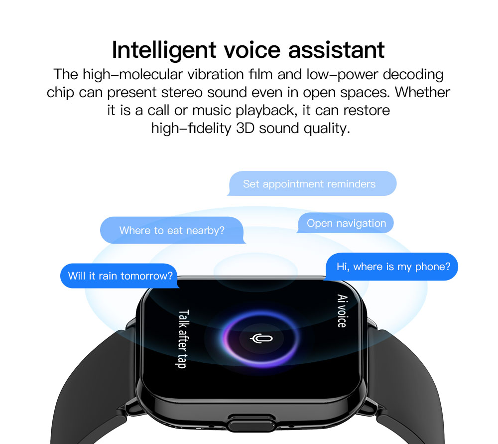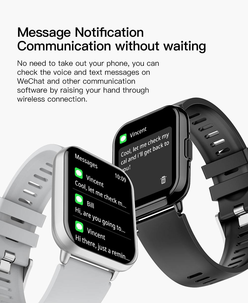 Daily Physical Health Monitoring, support 24h continuous heart rate monitoring and high/row heart rate alert, blood oxygen, blood pressure and sleep monitor. The fitness watch records daily sport data like steps, distance, calorie consumption. All data can be synchronized to your phone for analysis.