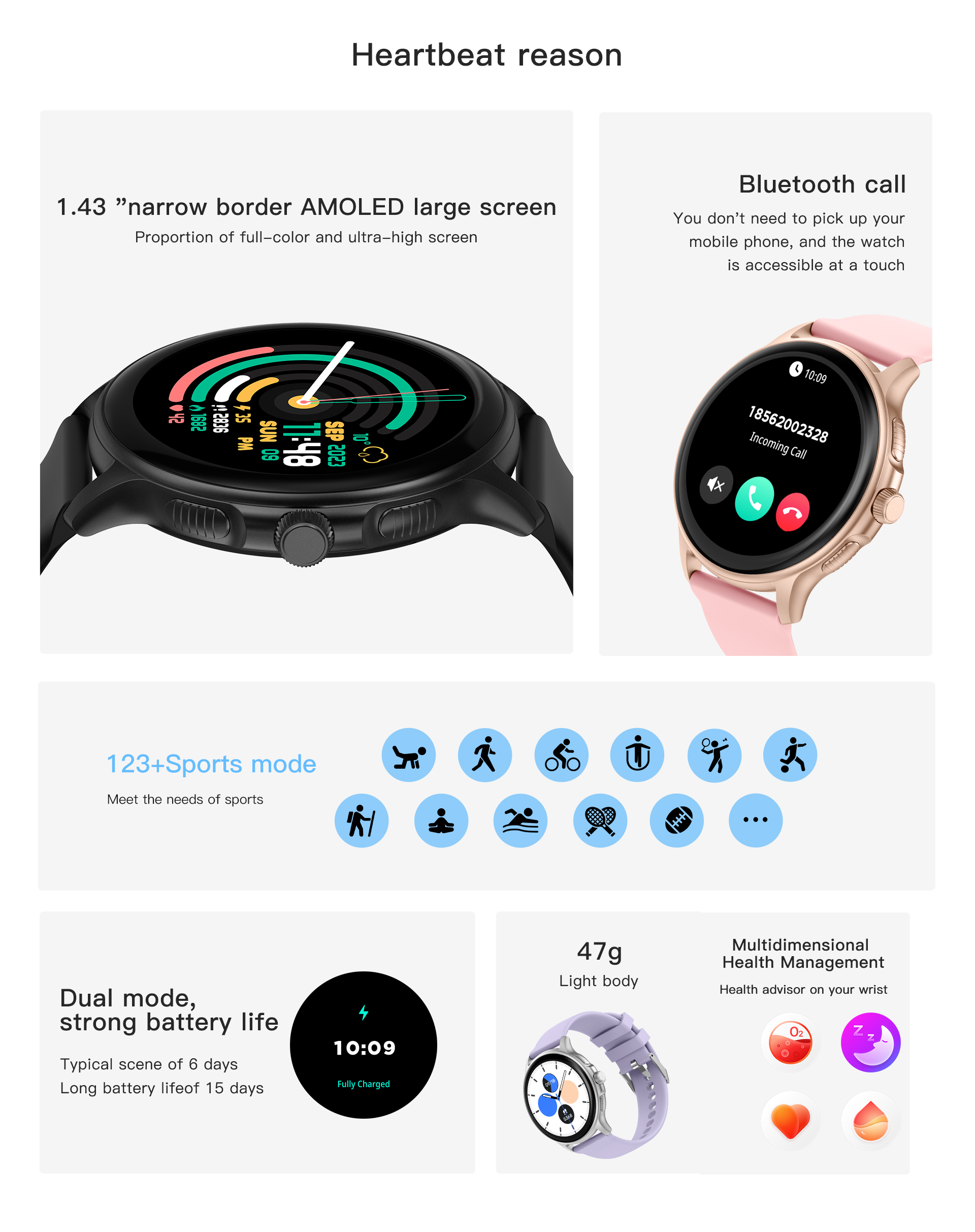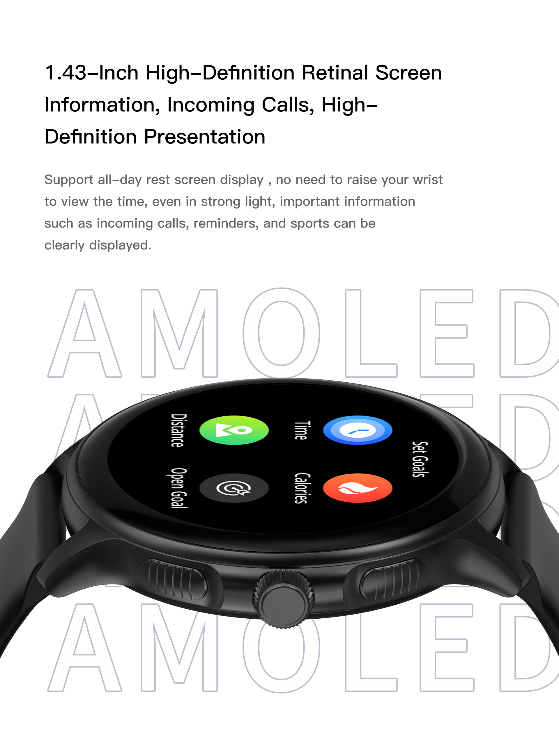 *1.43" AMOLED HD screen* We have incorporated the lightness, robustness and corrosion resistance of the mantle into the watch,forging an ultra-strength metal body that allows.Screen cover made of sapphire, protected by a Mohs hardness of up to 9 The 1.43" AMOLED screen is more impact resistant and durable.